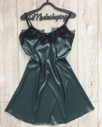 Женский атласный пеньюар с кружевом зеленый