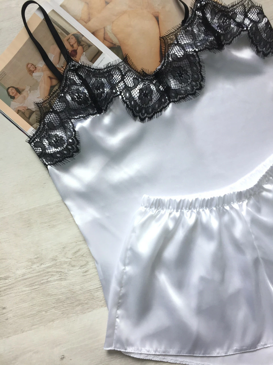 • Комплект выполнен из атласной ткани, комплект приятный к телу