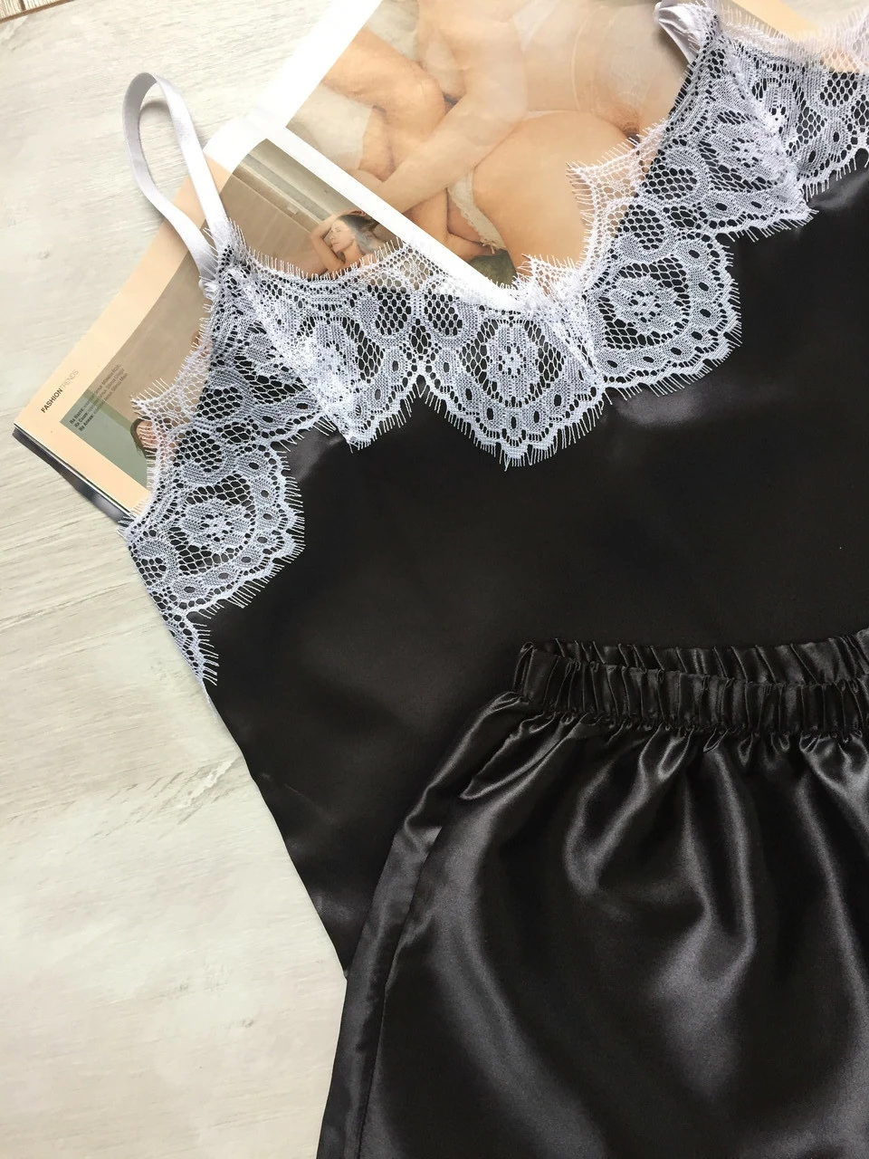 • Комплект выполнен из атласной ткани, комплект приятный к телу