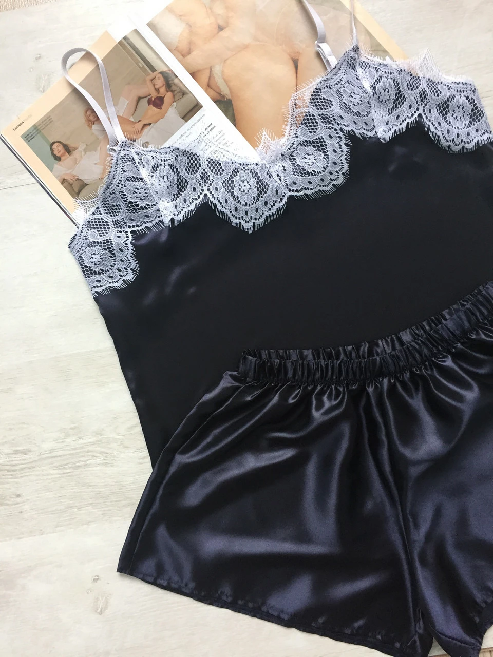 • Комплект выполнен из атласной ткани, комплект приятный к телу