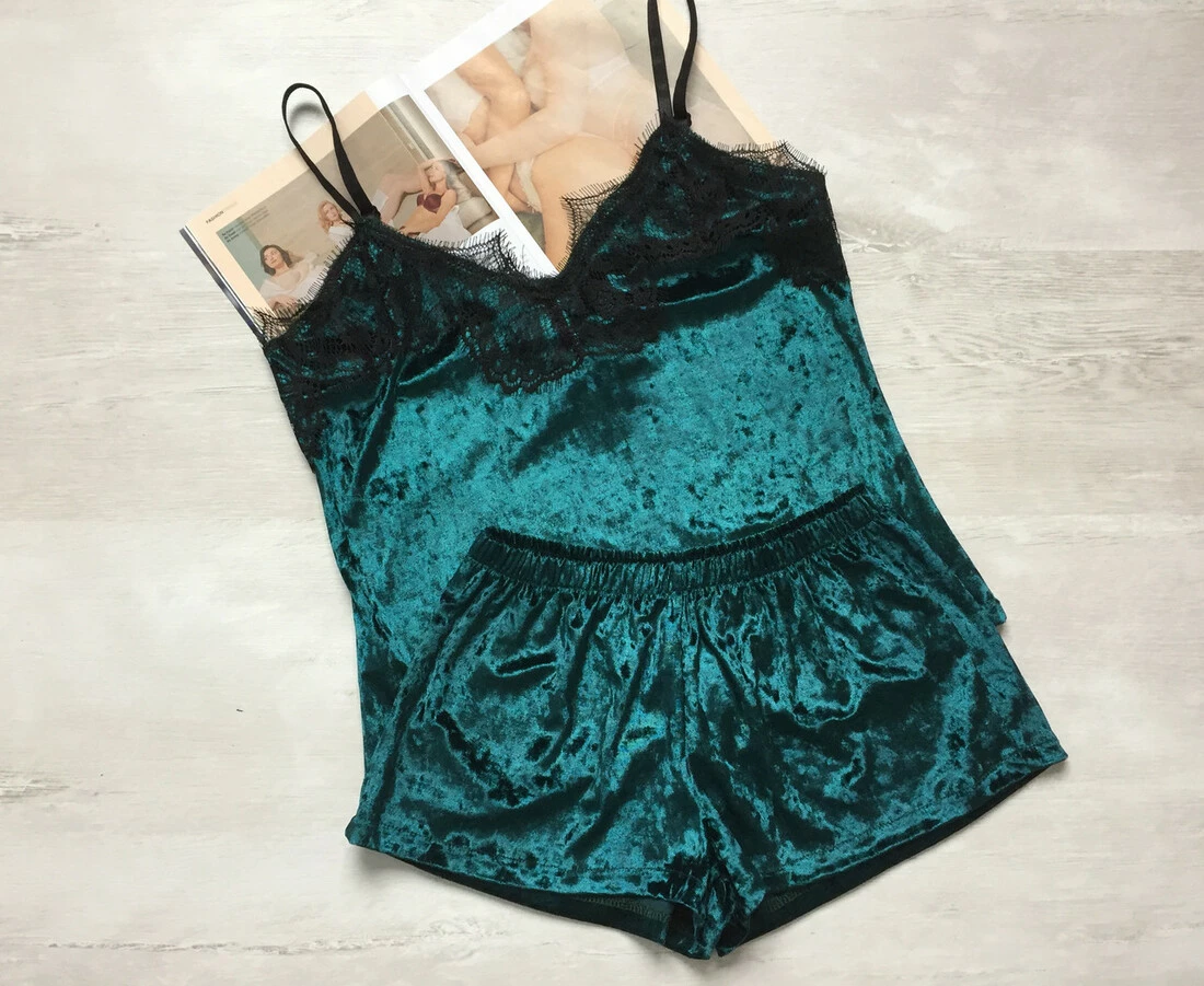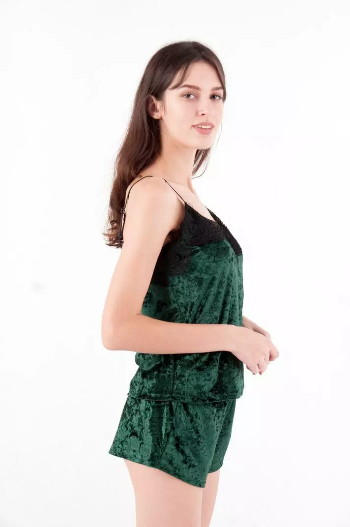 Пижама женская велюровая майка и шорты зеленый