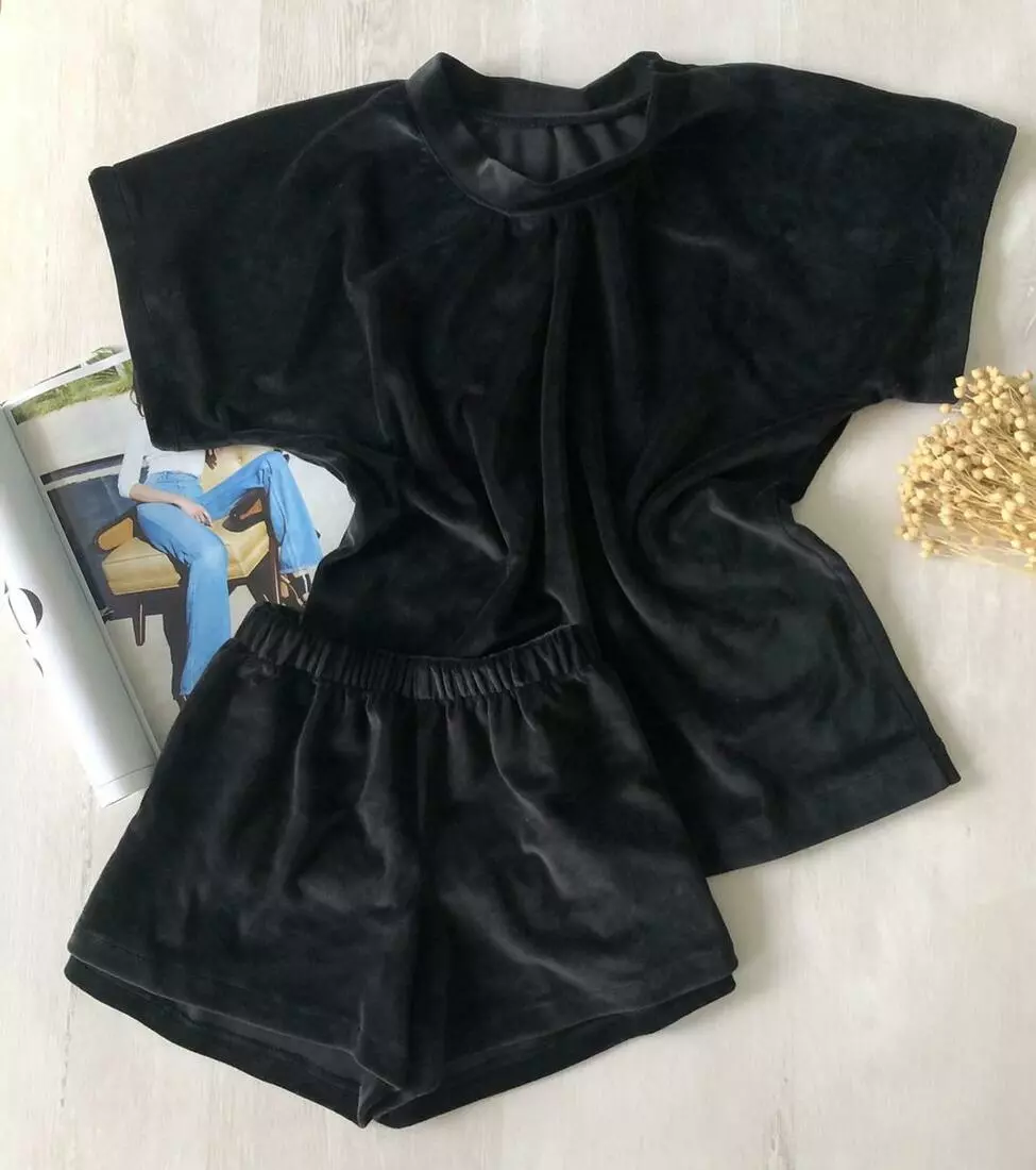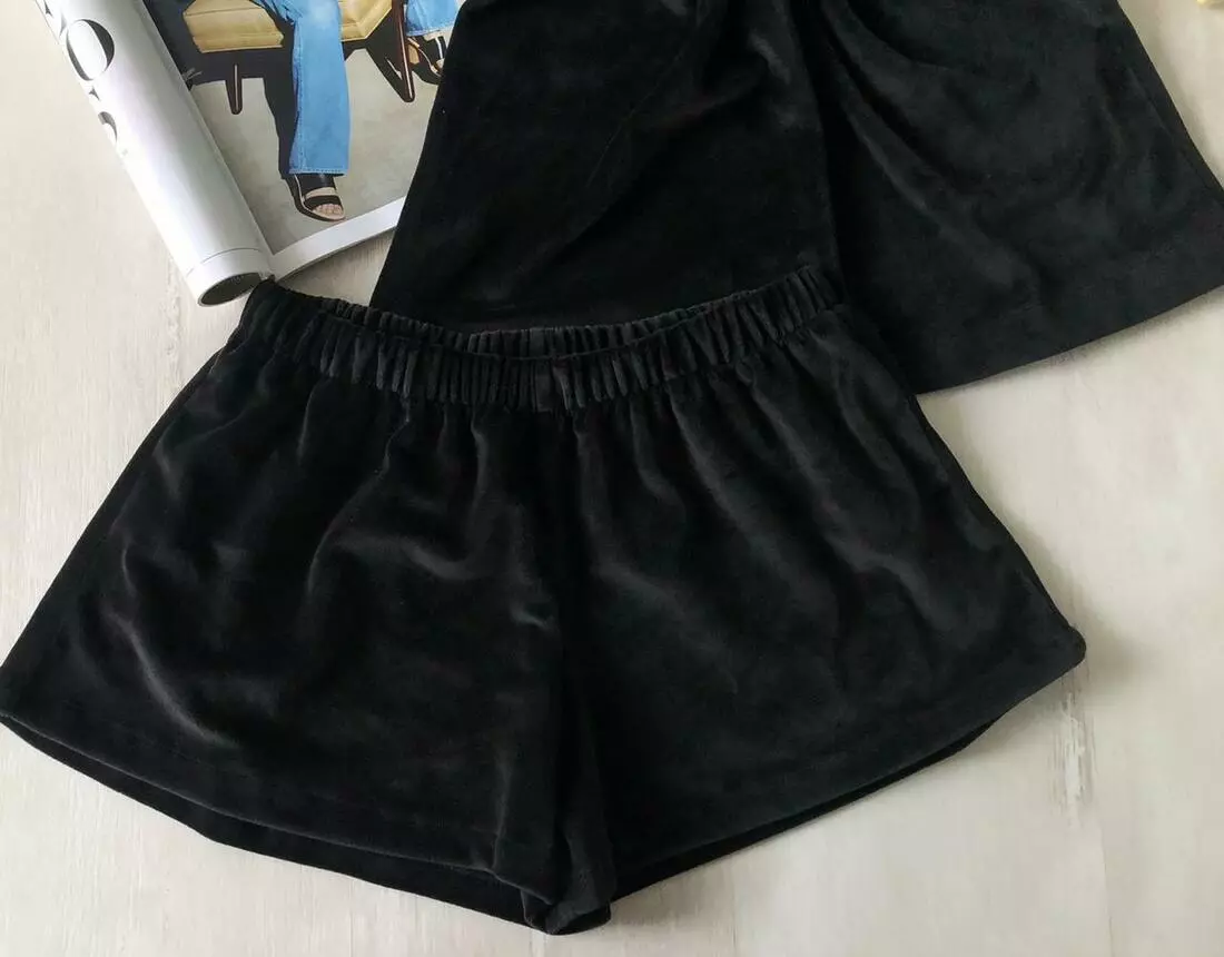 Плюшевая женская пижама - футболка с шортами для дома и сна.