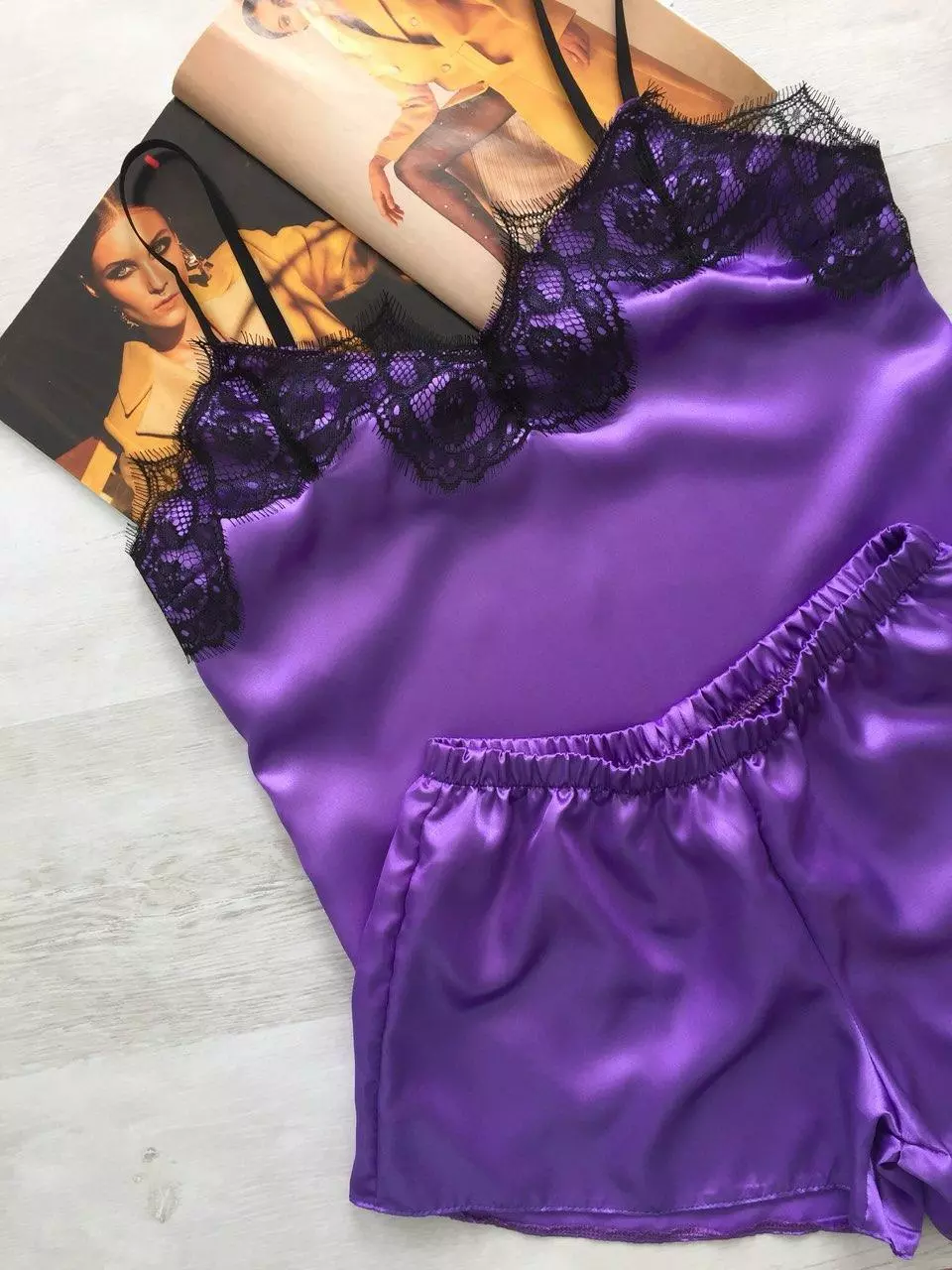 • Комплект выполнен из атласной ткани, комплект приятный к телу