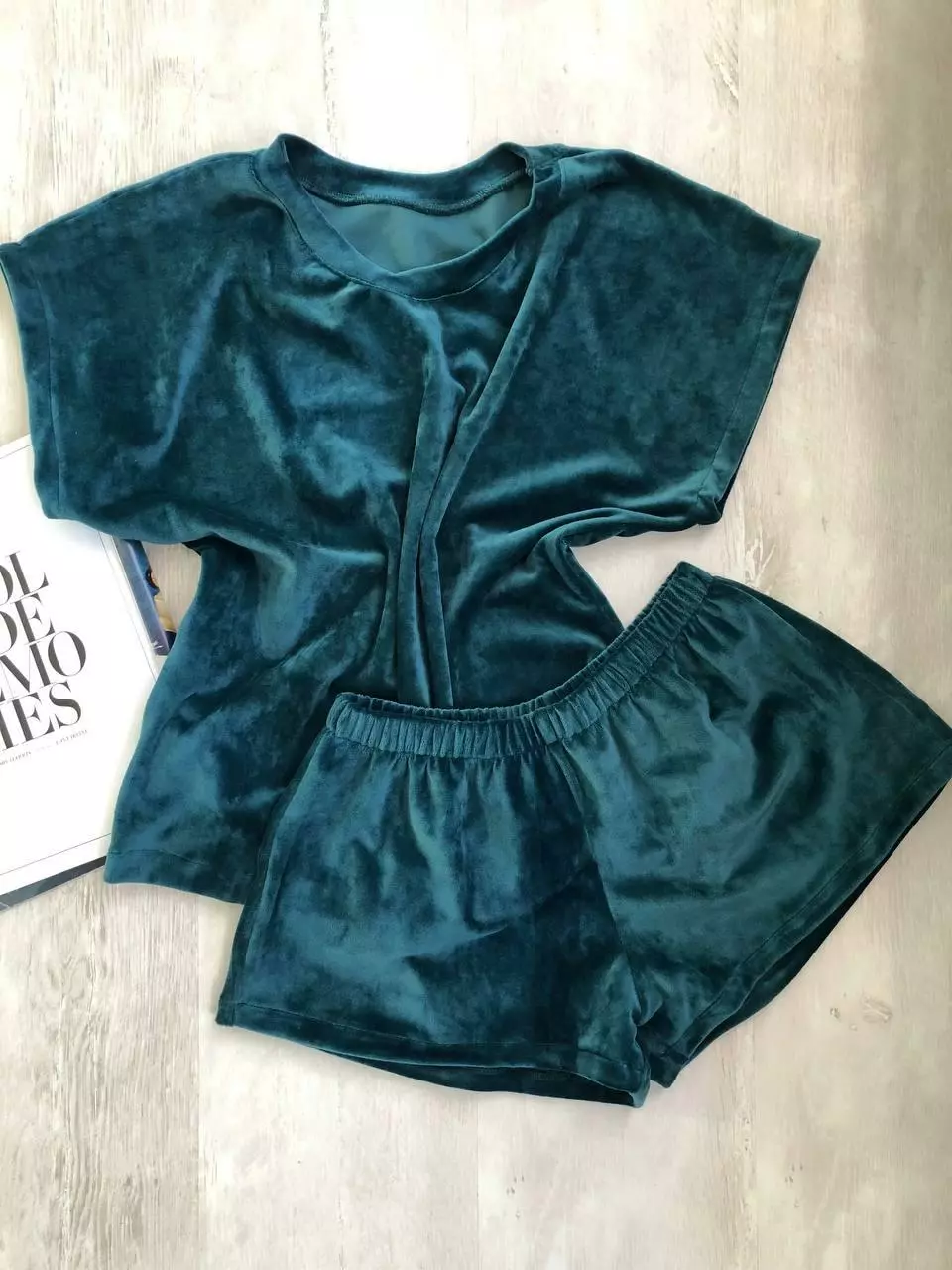 Плюшевая женская пижама - футболка с шортами для дома и сна.