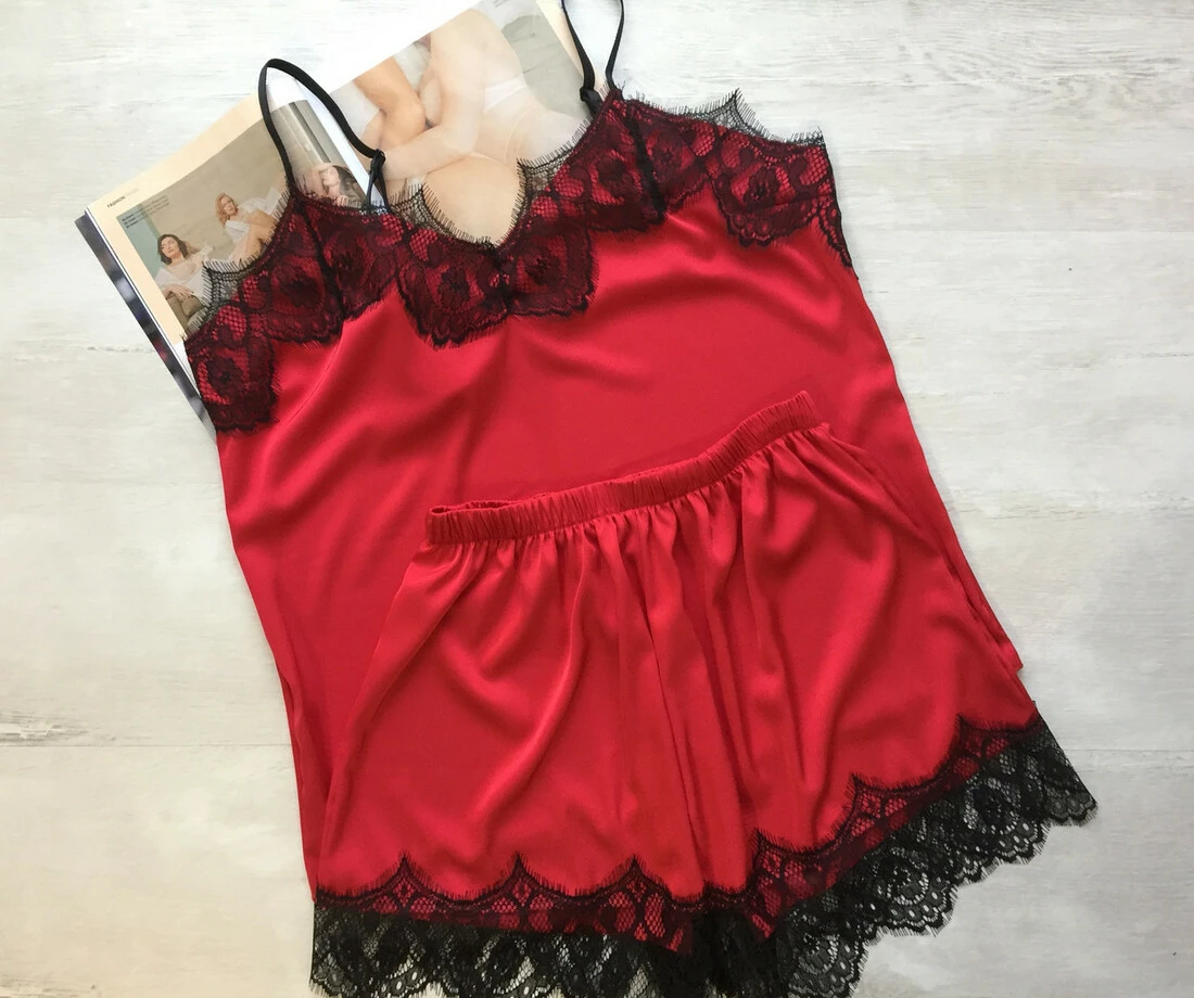 • Майка на тонких бретелях, вверх украшен нежным французским кружевом.