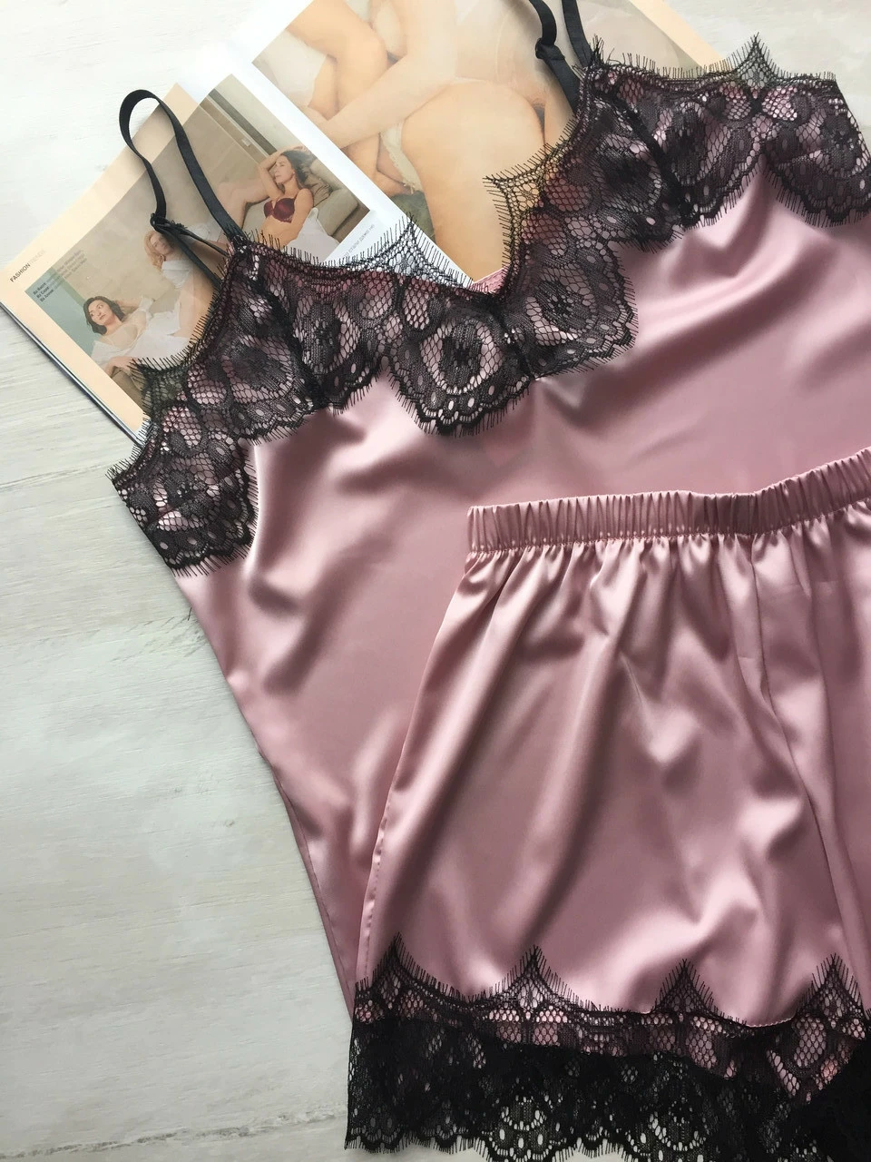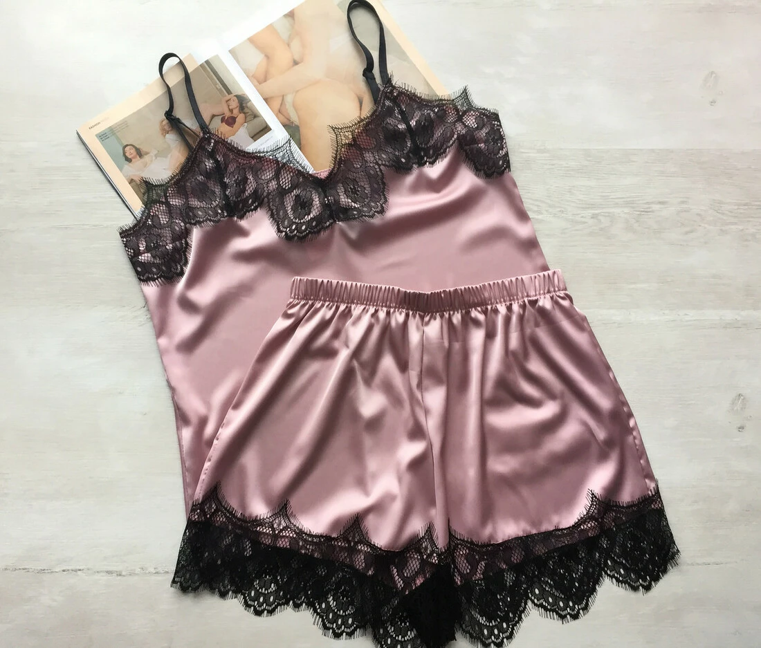 Женская шелковая пижама майка и шорты розовая