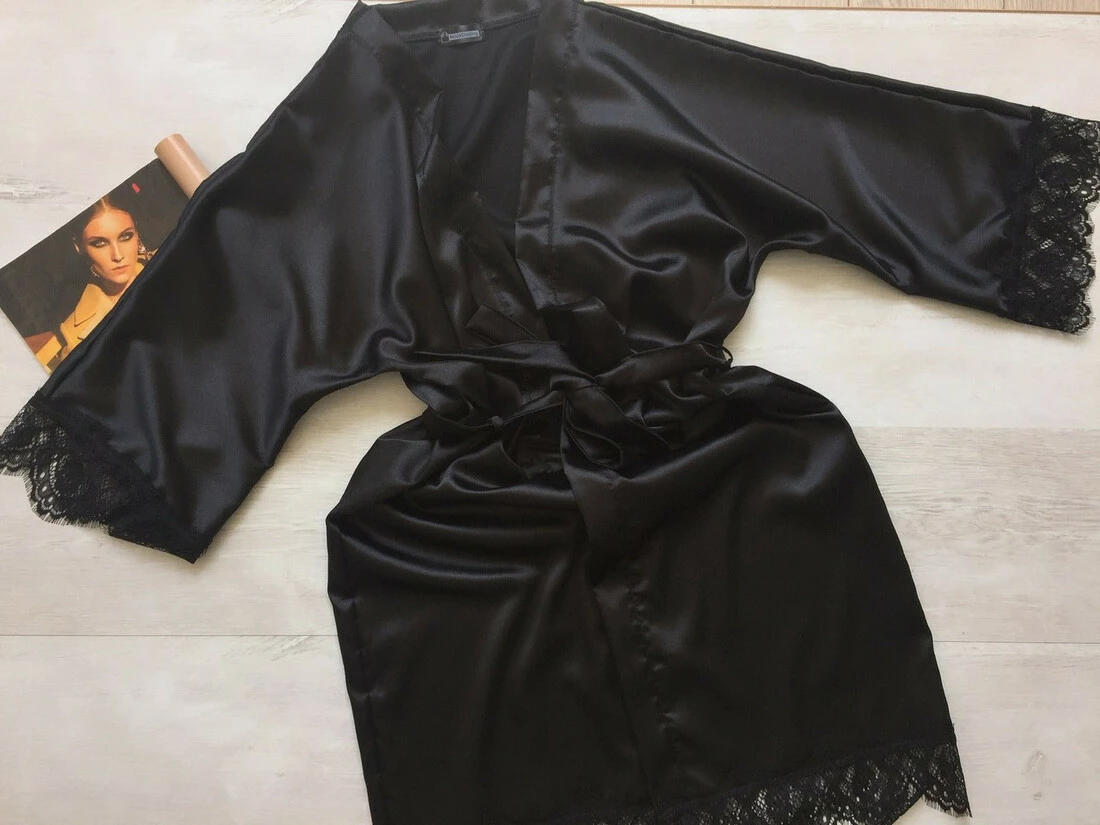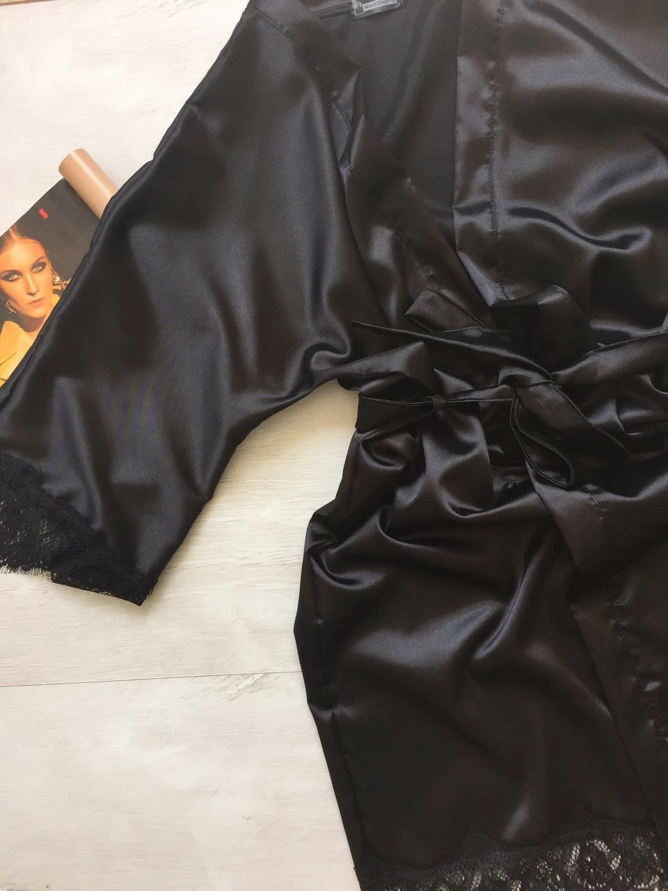 • Халат из атласной ткани, приятный к телу ткань тянется.