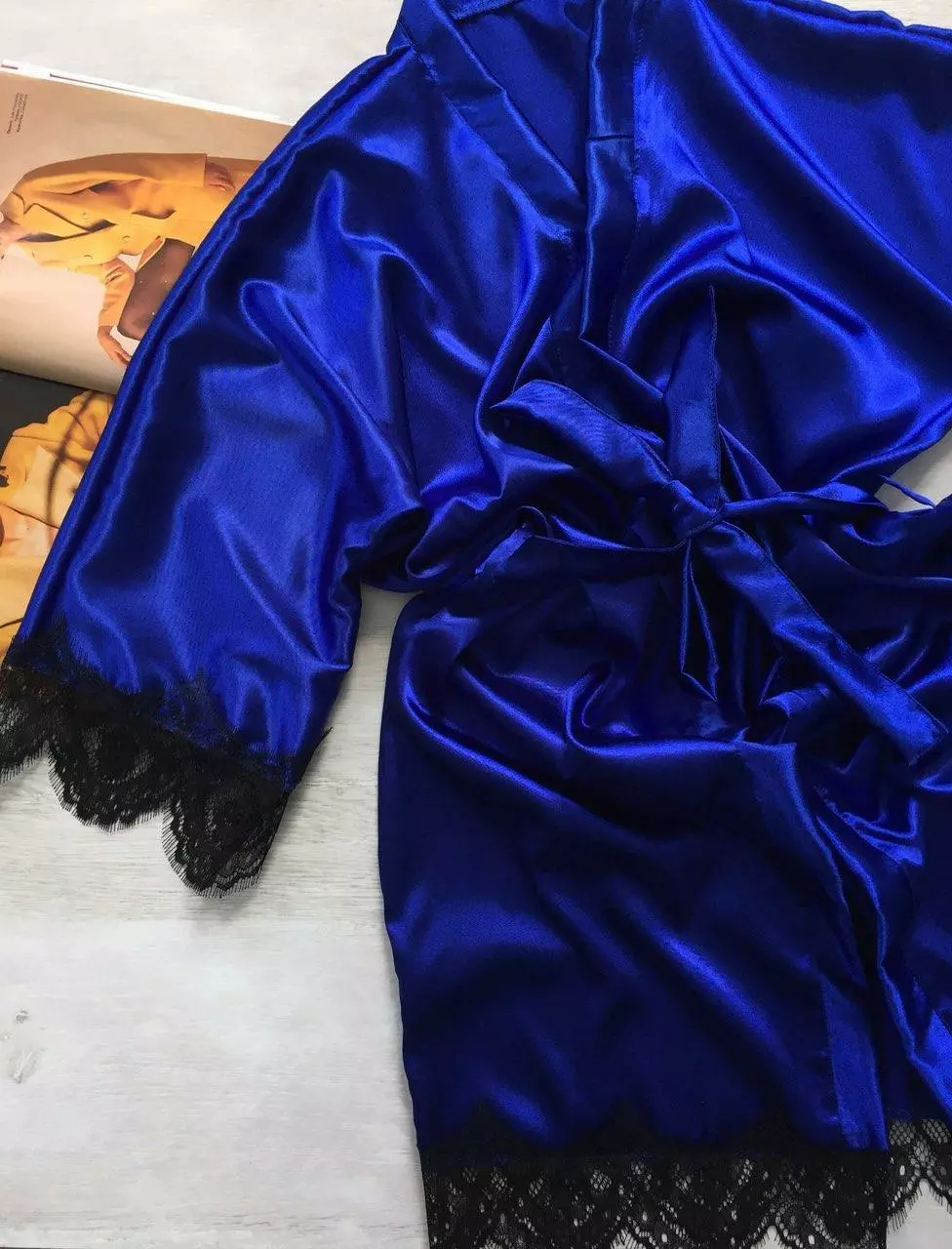 Женский атласный халат кимоно с поясом - для дома и сна.