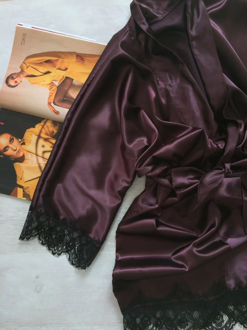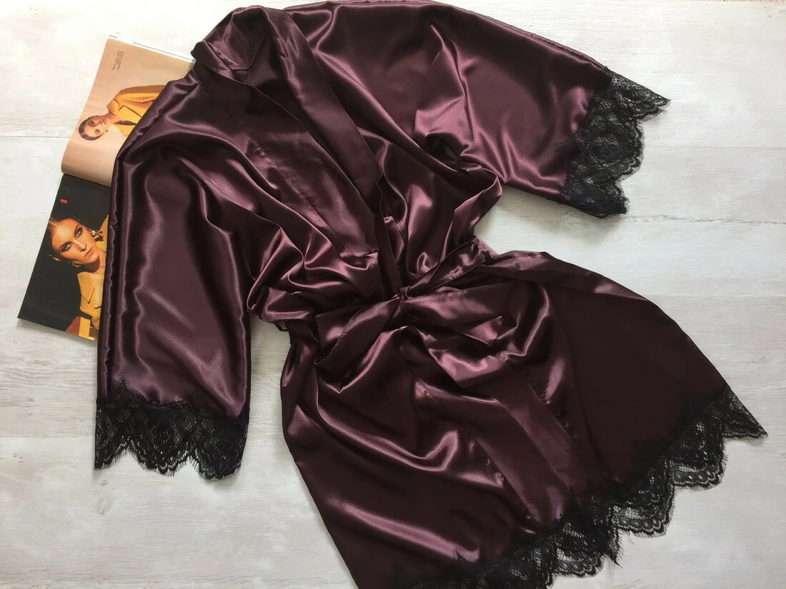 • Халат из атласной ткани, приятный к телу ткань тянется.