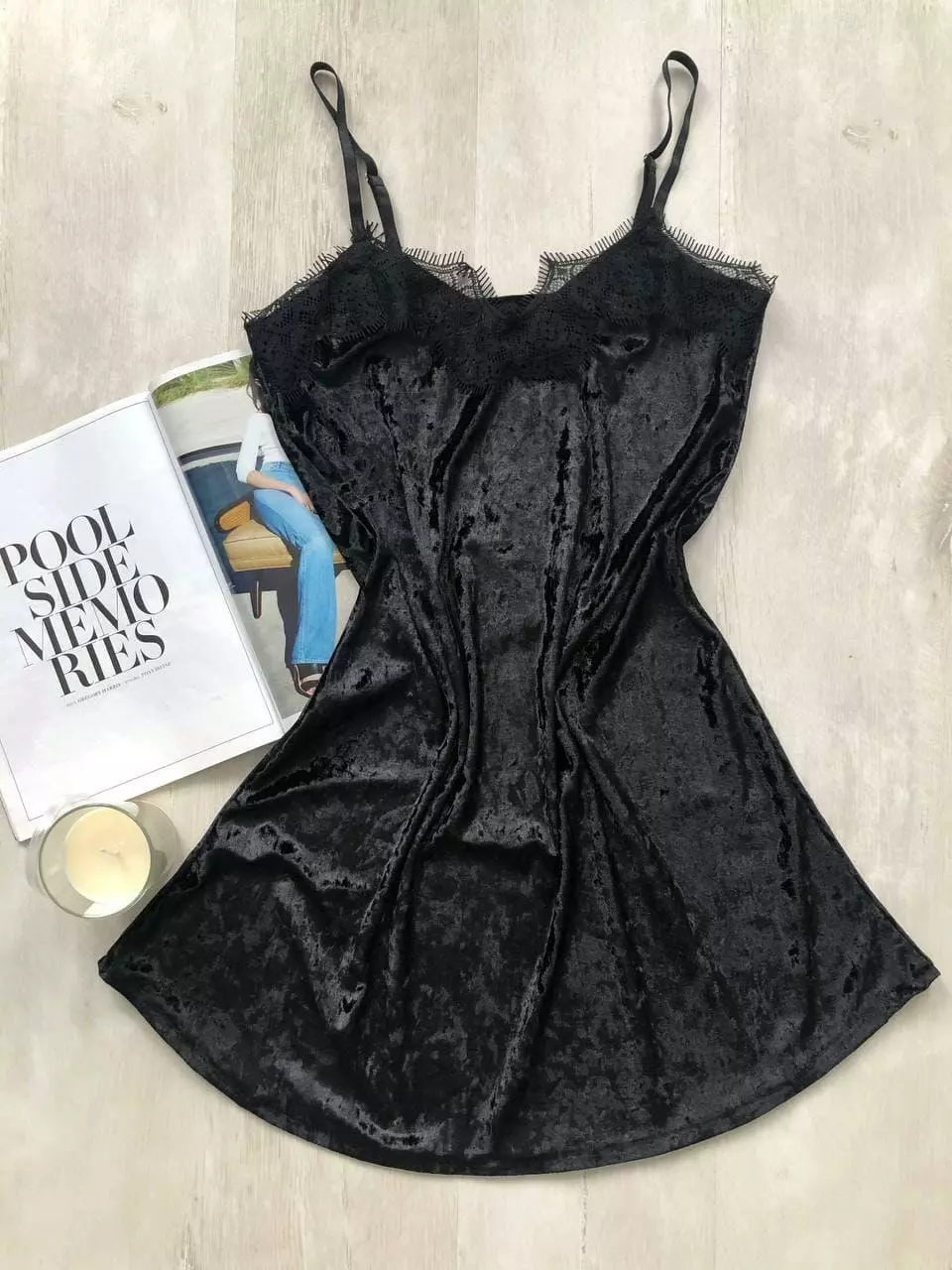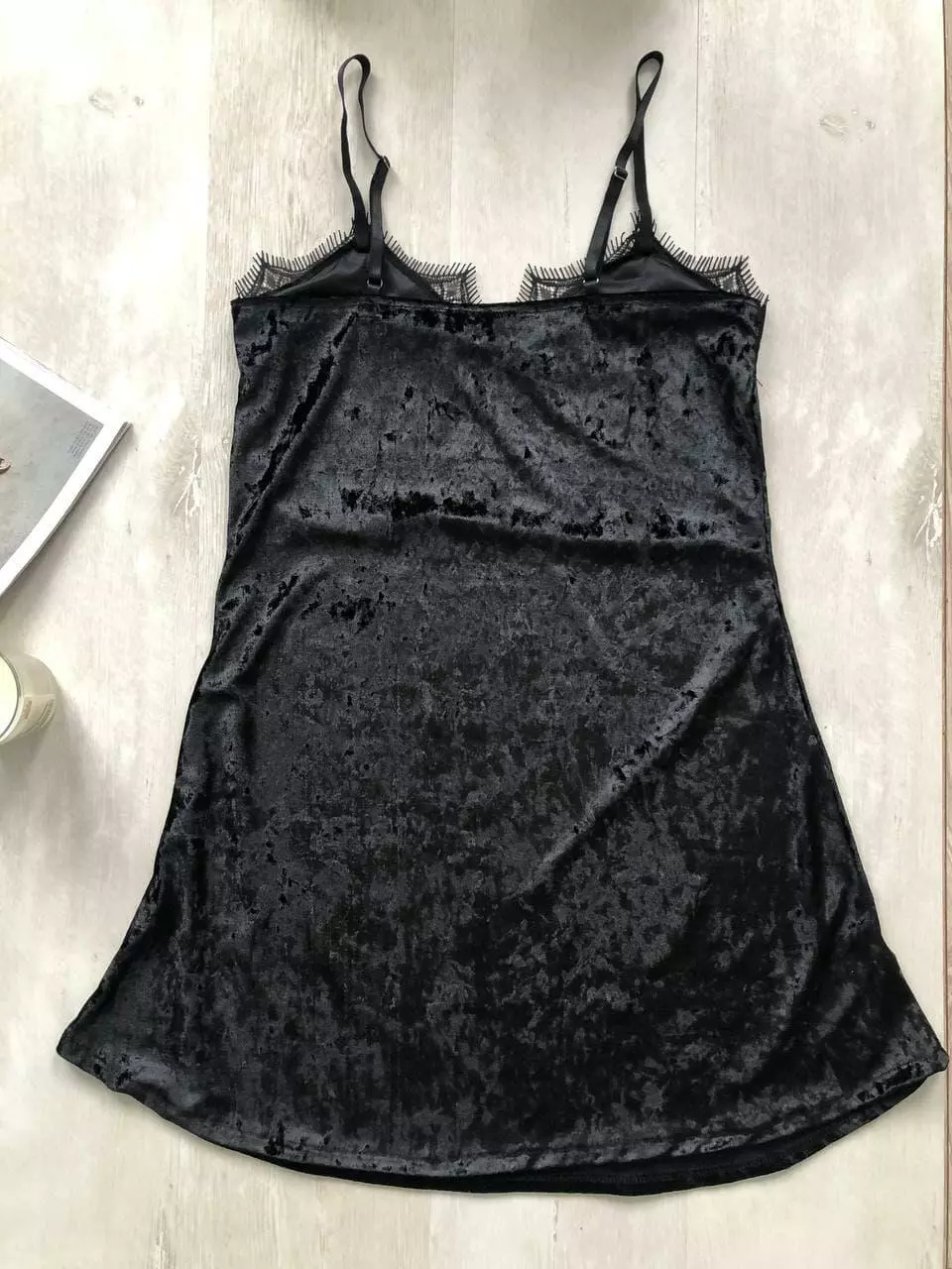 Женский пеньюар велюровый с кружевом черный
